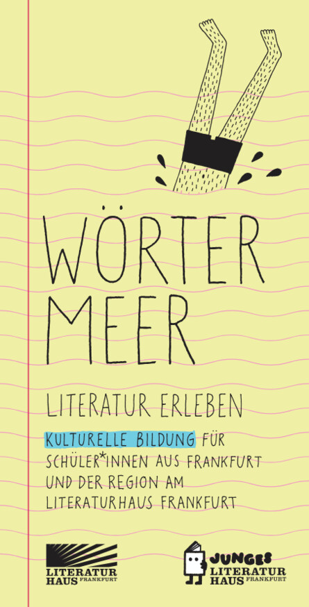 Das Projekt WÖRTERMEER – Literatur erleben geht in die neunte Runde! Von Februar bis Juni 2026 bietet das Literaturhaus Frankfurt fünf Workshops und eine Lesung für Schüler:innen aller weiterführenden Schulen aus Frankfurt und der Region an. Ziel von WÖRTERMEER ist es, über ein breites Spektrum an Veranstaltungen die Wahrnehmung von Schüler:innen für literarische Themen und Fragestellungen zu schärfen sowie den direkten Austausch mit Autor:innen und Künstler:innen am Literaturhaus Frankfurt zu ermöglichen. Es soll das Interesse für Literatur und Sprache dauerhaft angeregt und erweitert werden. WÖRTERMEER ergänzt das Programm des Jungen Literaturhauses und stärkt den Anspruch des Literaturhauses, sich als außerschulischen Lernort dauerhaft zu präsentieren. Die Teilnahme ist kostenfrei. Anmeldung unter Angabe von Motivation, Schule, Klassenstufe, Klassengröße an junges@literaturhaus-frankfurt.de bis spätestens