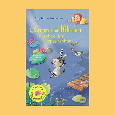Dass ein Zesel eine Mischung aus Zebra und Esel ist, wissen Fans der beliebten Serie „Grimm und Möhrchen“ (dtv) längst! Für die Geschichten rund um den Buchhändler mit dem berühmten Namen Grimm und sein ungewöhnliches Haustier Möhrchen hat Stephanie Schneider von einer Kinderjury 2022 den Deutschen Kinderbuchpreis erhalten – nun überrascht die Autorin mit zwei Erstlesebüchern, die es in sich haben. Ob bei der Spritztour mit dem feuerwehrroten Tretauto, wenn Möhrchen rund um die Tankstelle „Tankeschön“ düst oder beim Ausflug zum Strandbad, wo das Zesel (kann es überhaupt schwimmen?) auch das Seepferdchen-Abzeichen machen möchte – es geht rasant zu, wenn Grimm und Möhrchen sich wieder in neue Abenteuer stürzen!